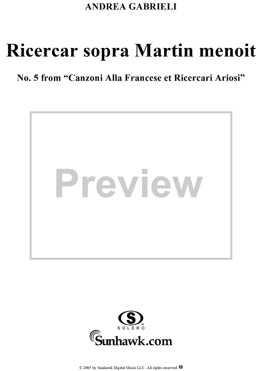 "Ricercar sopra Martin menoit, No. 5 from "Canzoni Alla Francese et Ricercari Ariosi"" Sheet Music by Andrea Gabrieli