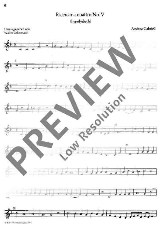 Digital Sheet Music for Ricercari a quattro - Violin by Andrea Gabrieli scored for Various Instruments (3 Violas And Basso Continuo; Violin, 2 Violas And Cello; 4 Gamben; 4 Trombones; Trumpet (c) And 3 Trombones; id:482103