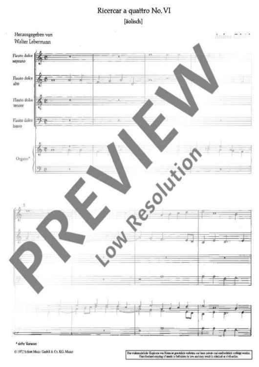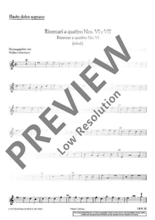 Digital Sheet Music for Ricercari - Score and Parts by Andrea Gabrieli scored for 4 Recorders (satb); id:482756