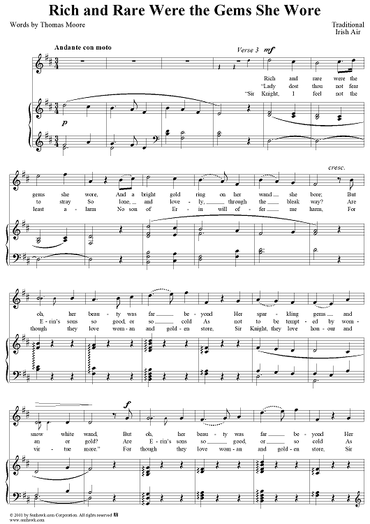 Digital Sheet Music for Rich and Rare Were the Gems She Wore by Thomas Moore, Traditional scored for Piano/Vocal; id:258894