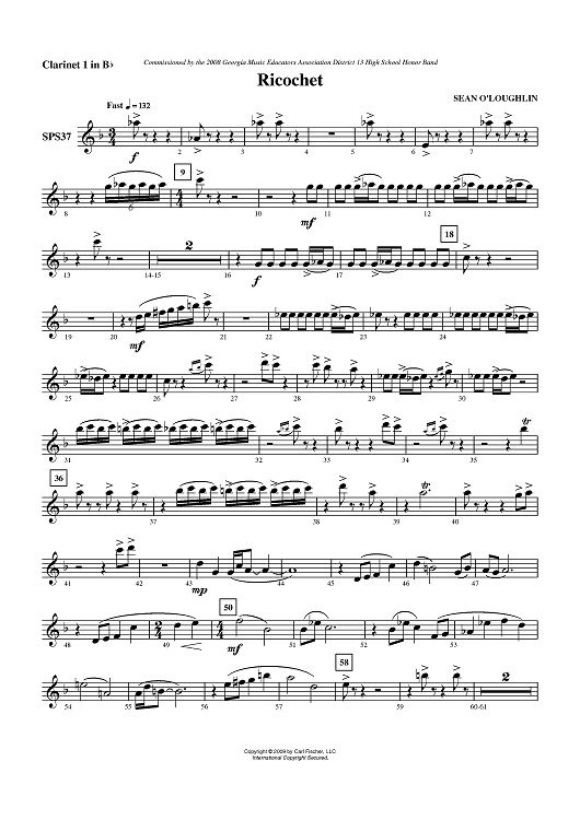 Digital Sheet Music for Ricochet - Clarinet 1 in B-flat by Sean O'Loughlin scored for Symphonic Band; id:406203
