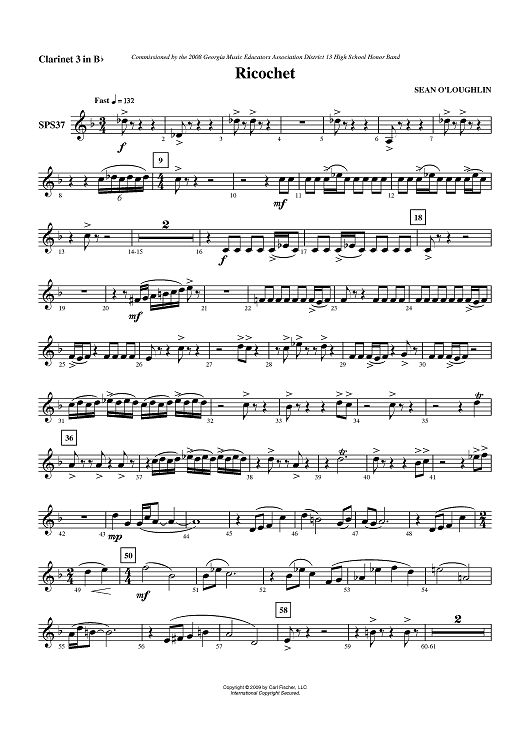 Digital Sheet Music for Ricochet - Clarinet 3 in B-flat by Sean O'Loughlin scored for Symphonic Band; id:406205