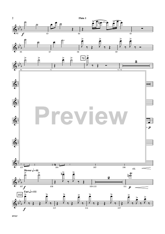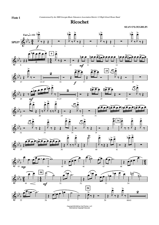 Digital Sheet Music for Ricochet - Flute 1 by Sean O'Loughlin scored for Symphonic Band; id:406200