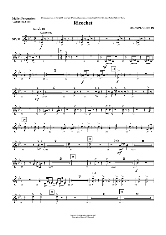 Digital Sheet Music for Ricochet - Mallet Percussion by Sean O'Loughlin scored for Symphonic Band; id:406225