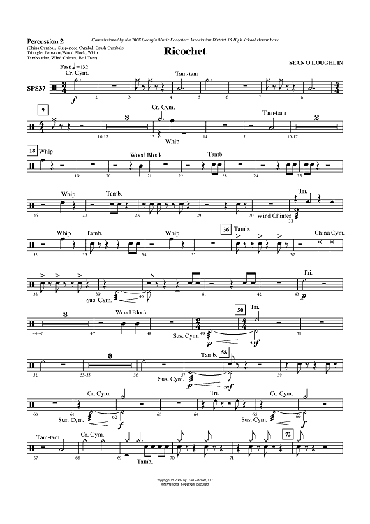 Digital Sheet Music for Ricochet - Percussion 2 by Sean O'Loughlin scored for Symphonic Band; id:406228