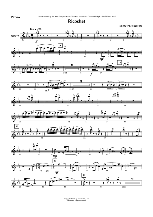 Digital Sheet Music for Ricochet - Piccolo by Sean O'Loughlin scored for Symphonic Band; id:406199