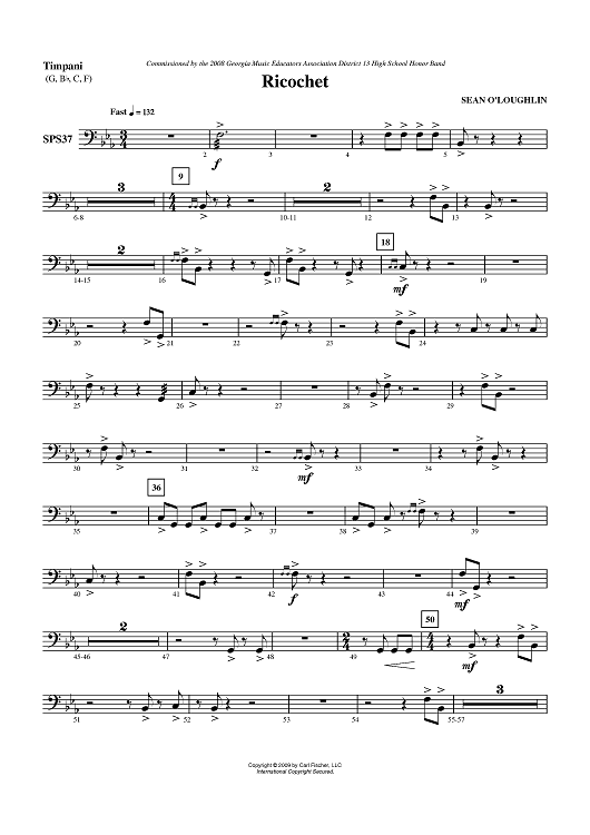 Digital Sheet Music for Ricochet - Timpani by Sean O'Loughlin scored for Symphonic Band; id:406226