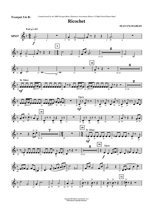 Digital Sheet Music for Ricochet - Trumpet 3 in B-flat by Sean O'Loughlin scored for Symphonic Band; id:406214