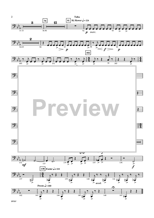Digital Sheet Music for Ricochet - Tuba by Sean O'Loughlin scored for Symphonic Band; id:406224