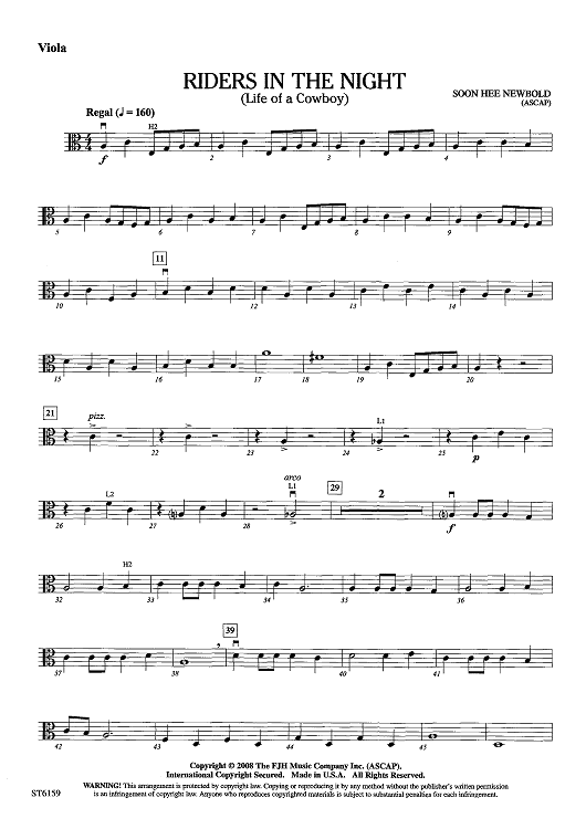 "Riders in the Night (Life of a Cowboy) - Viola" Sheet Music by Soon Hee Newbold
