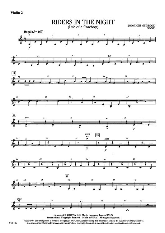 Digital Sheet Music for Riders in the Night (Life of a Cowboy) - Violin 2 by Soon Hee Newbold scored for String Orchestra; id:441656