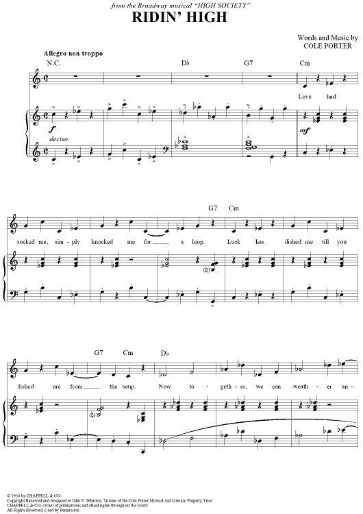Digital Sheet Music for Ridin' High by Cole Porter scored for Piano/Vocal/Chords; id:254437