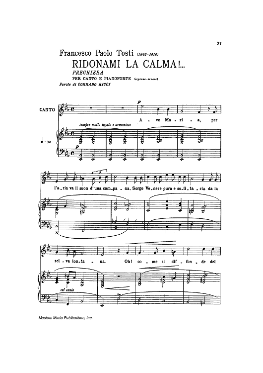 Digital Sheet Music for Ridonami la calma!... by Francesco Paolo Tosti, Corrado Ricci scored for Piano/Vocal; id:444603