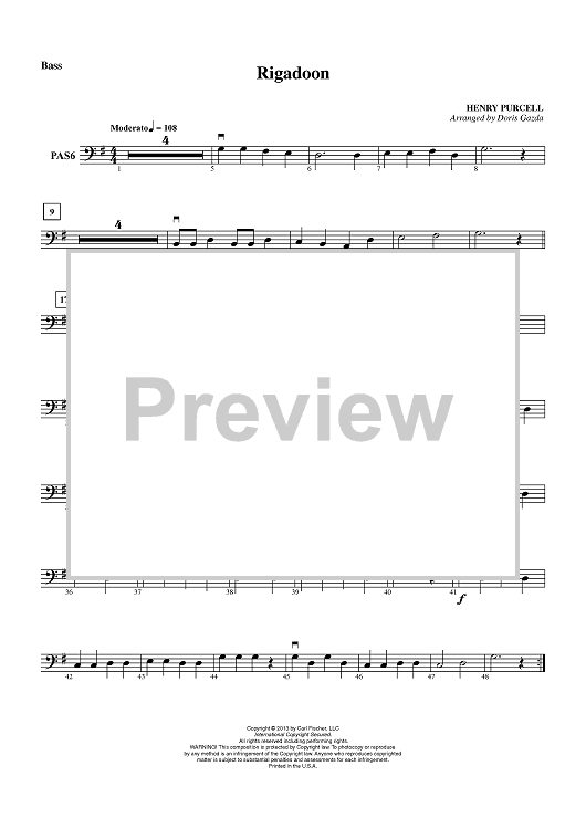 "Rigadoon - Bass" Sheet Music by Henry Purcell