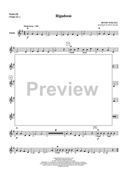 Digital Sheet Music for Rigadoon - Violin 3 (Viola T.C.) by Henry Purcell, Doris Gazda scored for String Orchestra; id:435077
