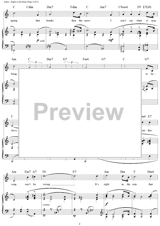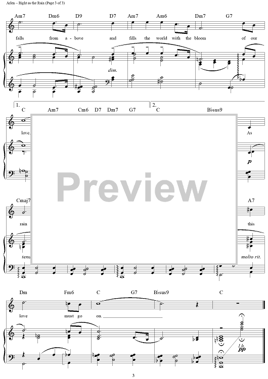 Digital Sheet Music for Right as the Rain by Harold Arlen, E.Y. "Yip" Harburg scored for Piano/Vocal/Chords; id:355920