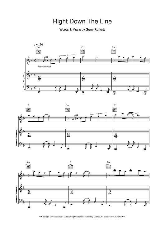 Digital Sheet Music for Right Down The Line by Gerry Rafferty scored for Piano/Vocal/Chords; id:376114