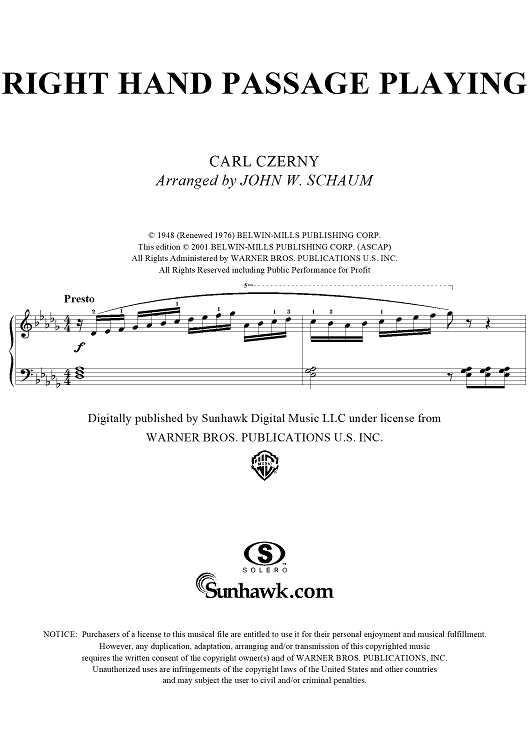 Digital Sheet Music for Right Hand Passage Playing by Carl Czerny, John W. Schaum scored for Piano Solo; id:293112