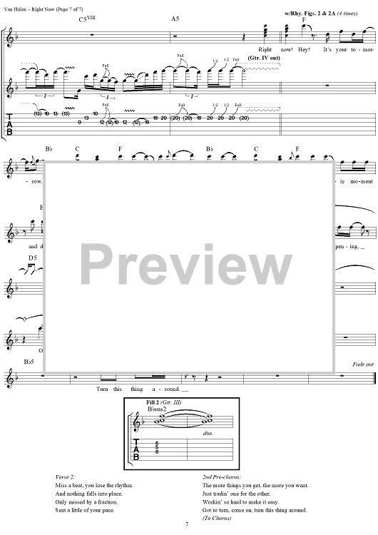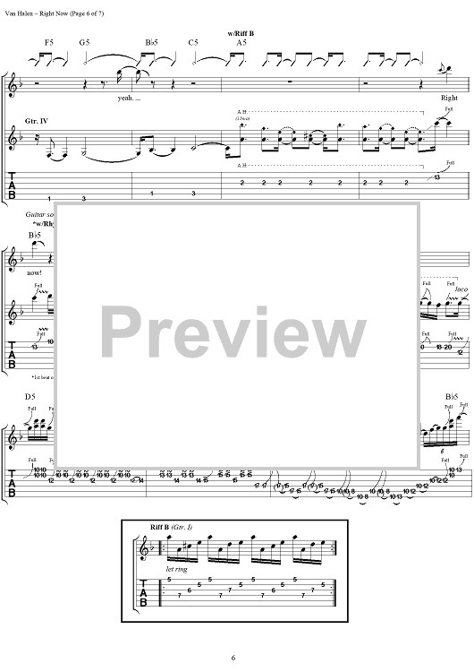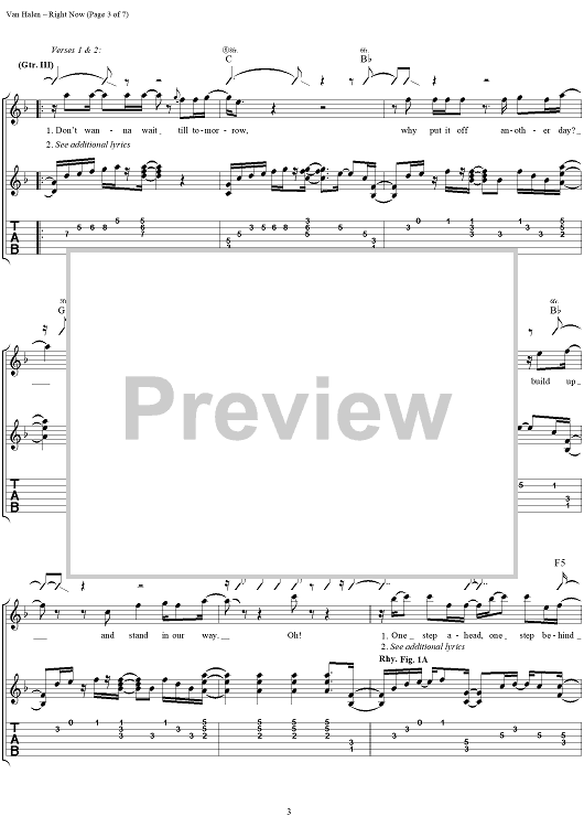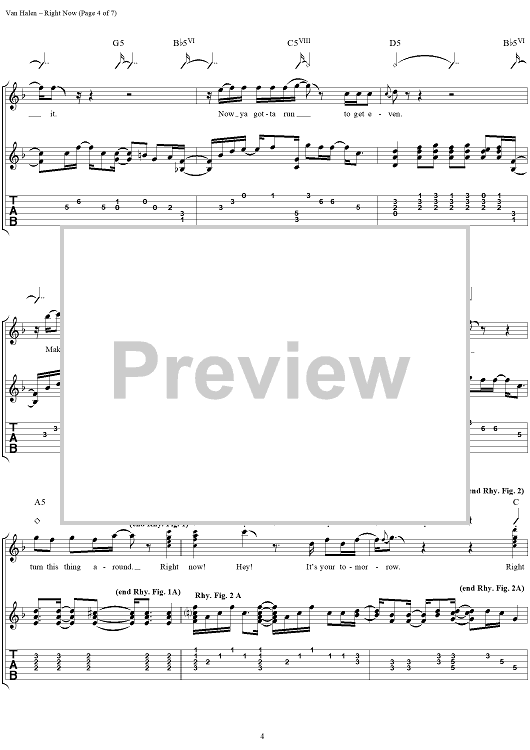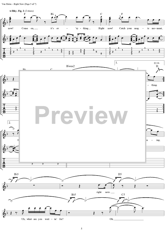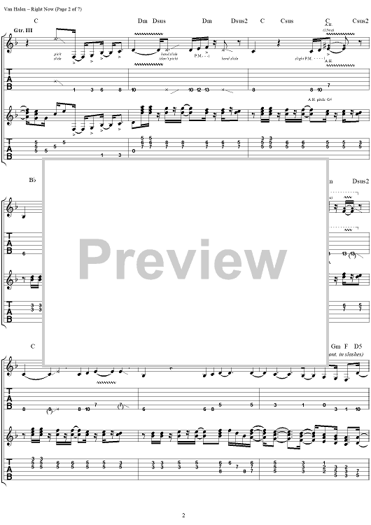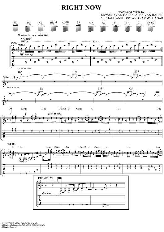 Digital Sheet Music for Right Now by Eddie Van Halen, Sammy Hagar, Michael Anthony, Alex Van Halen, Van Halen scored for Guitar Tab/Vocal; id:132904