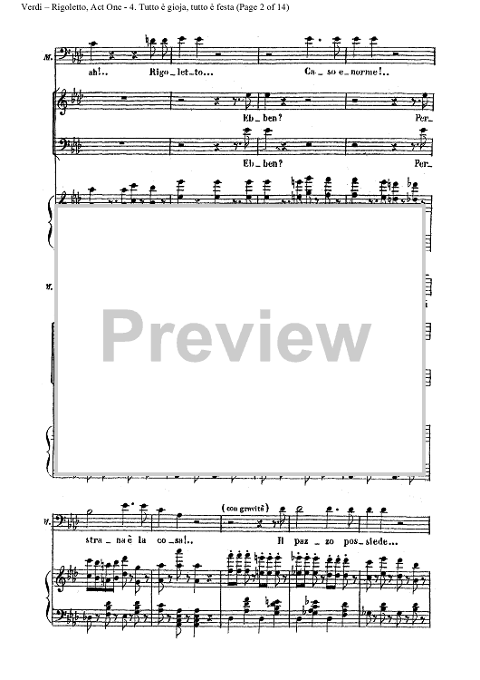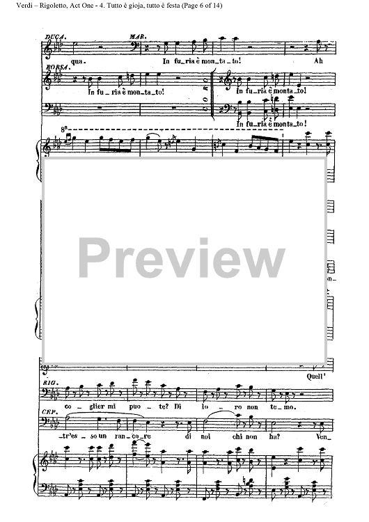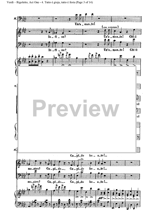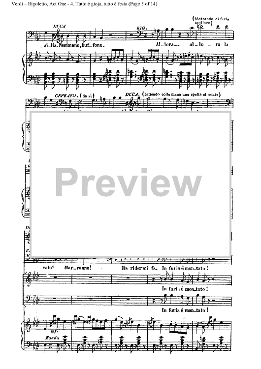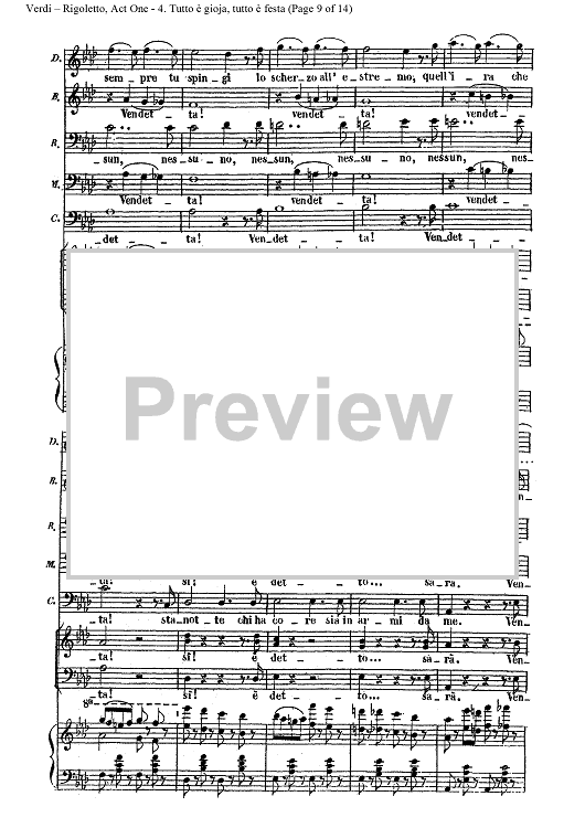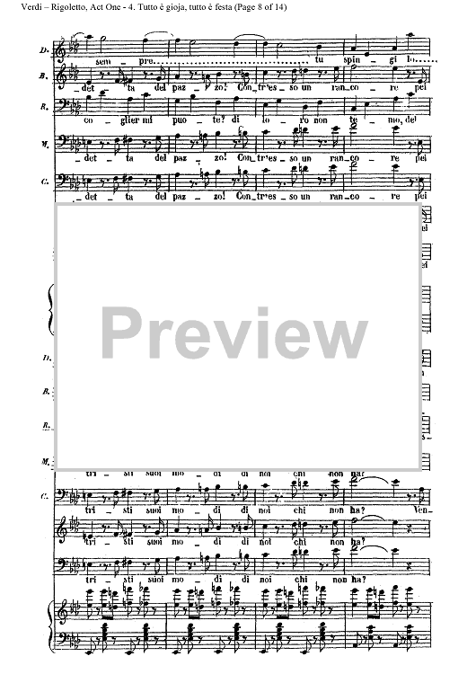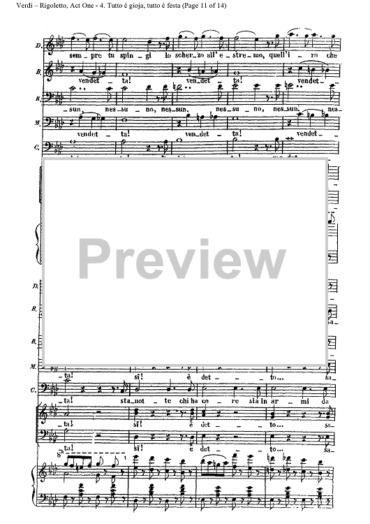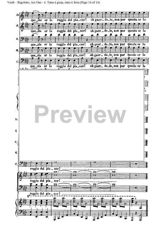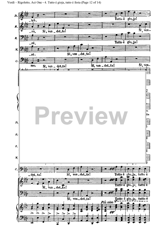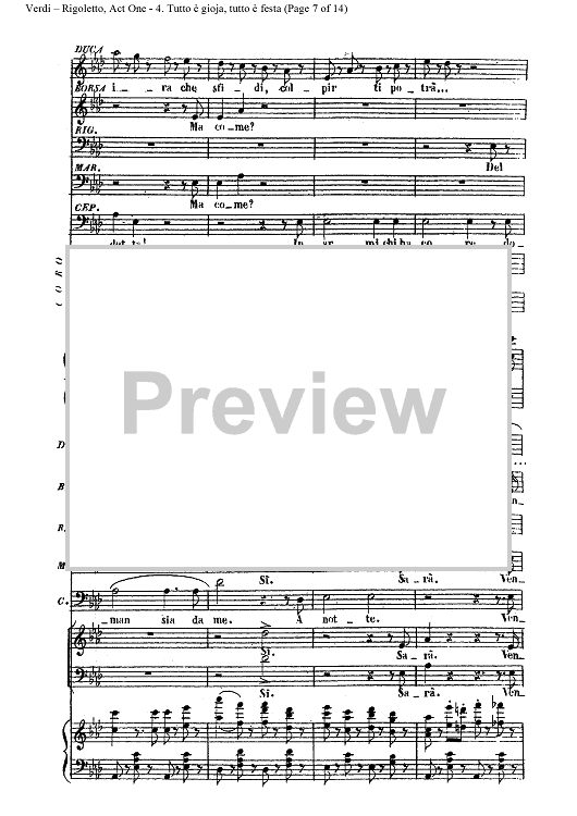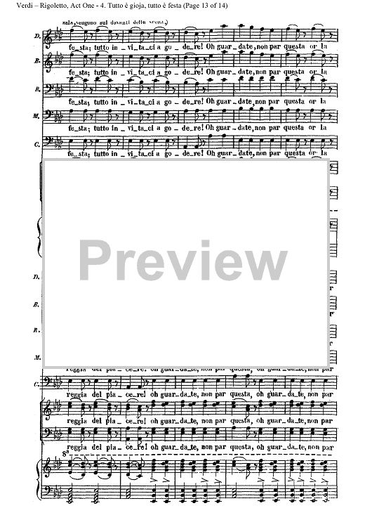 Digital Sheet Music for Rigoletto, Act 1, No. 4: Tutto è gioja, tutto è festa by Giuseppe Verdi scored for Vocal Score; id:444560