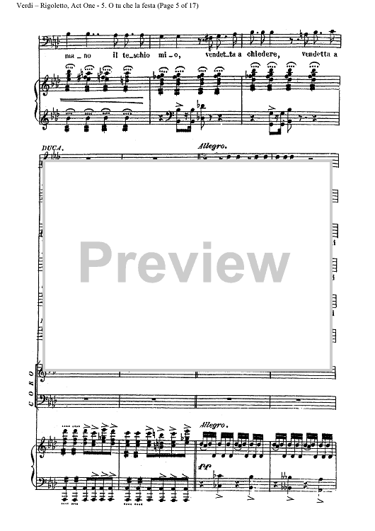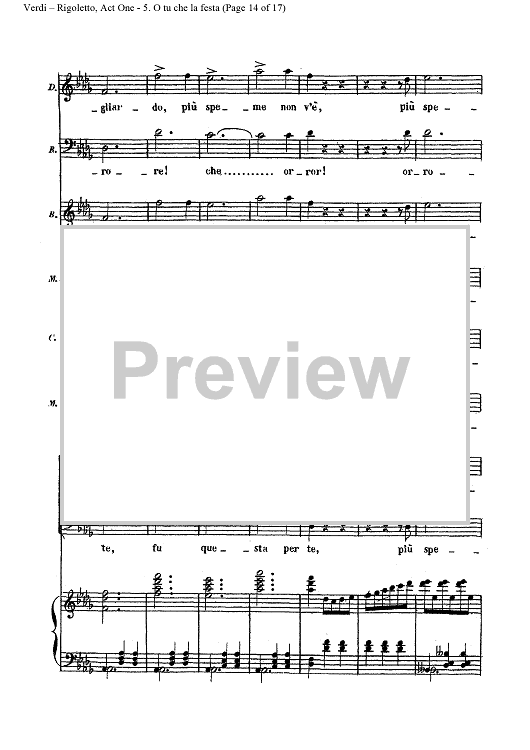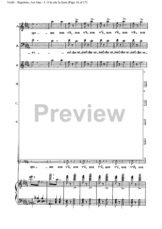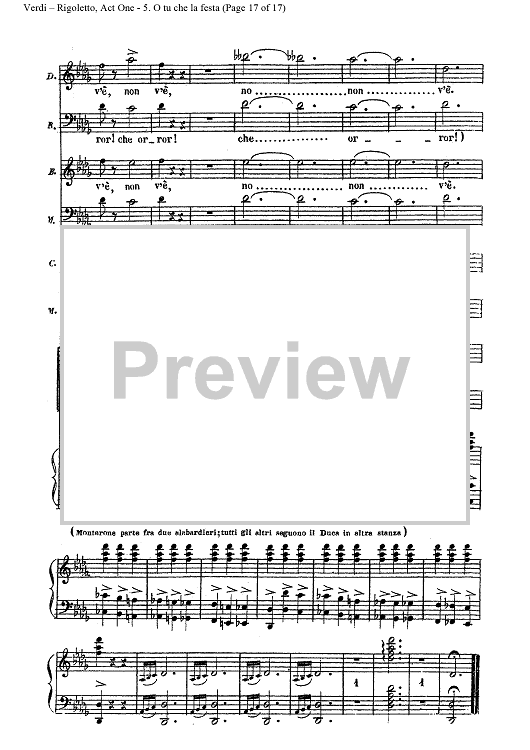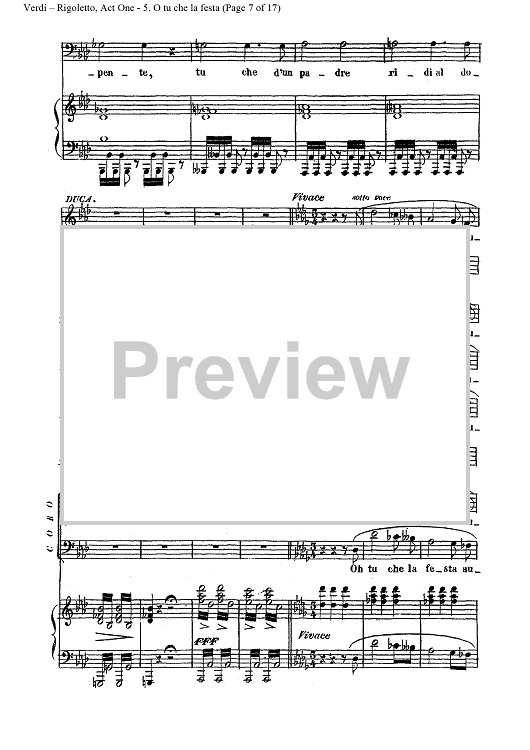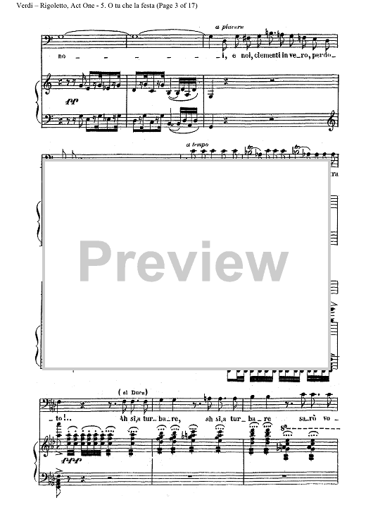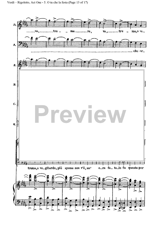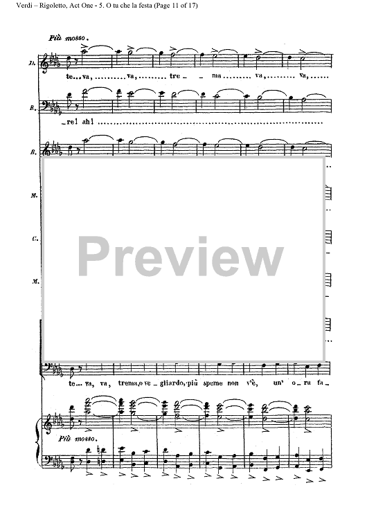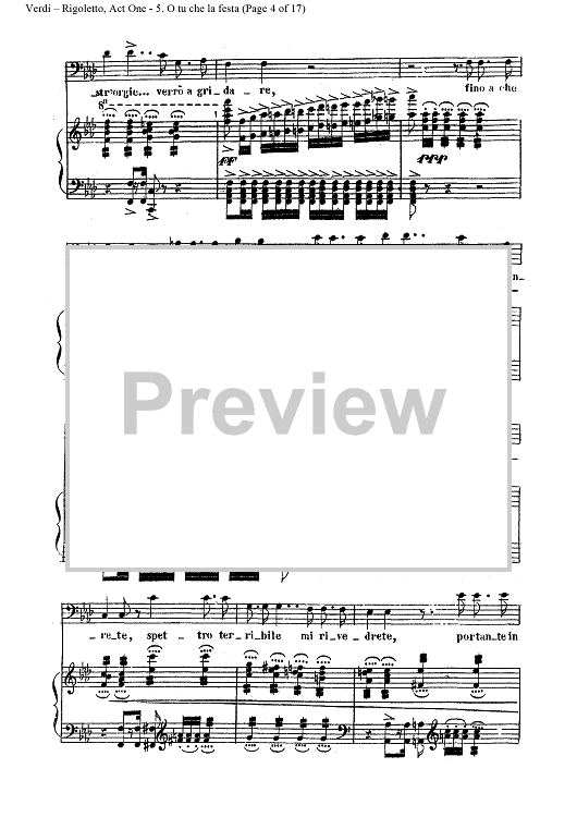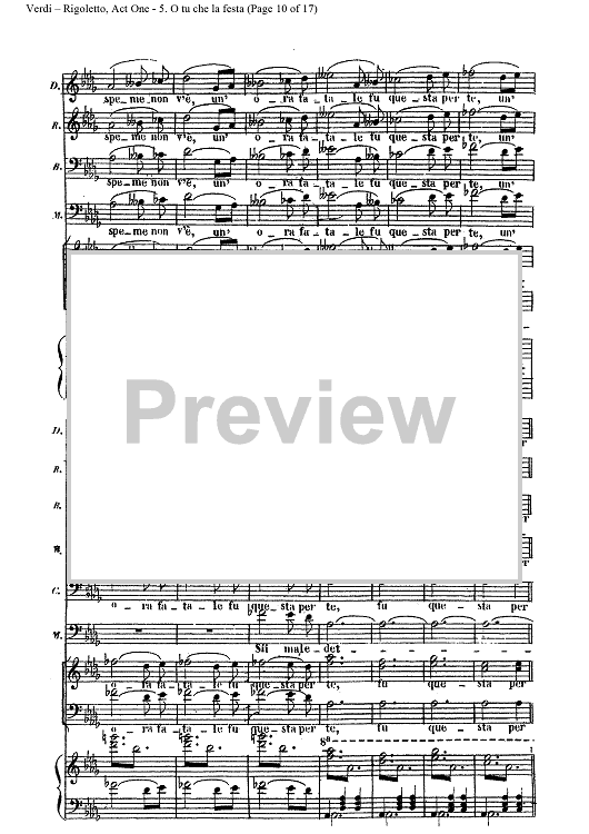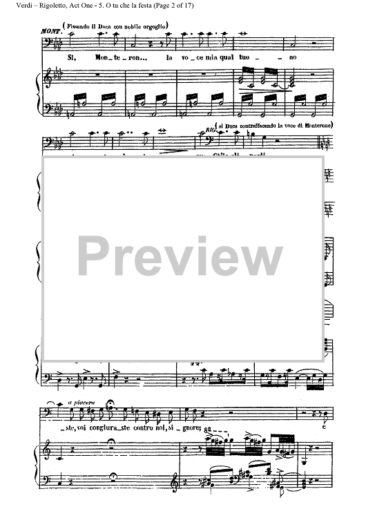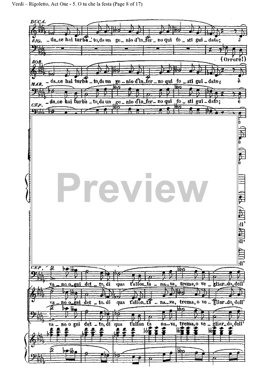 Digital Sheet Music for Rigoletto, Act 1, No. 5: O tu che la festa audace hui turbato by Giuseppe Verdi scored for Vocal Score; id:444561