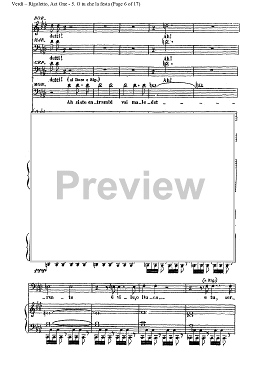 "Rigoletto, Act 1, No. 5: O tu che la festa audace hui turbato" Sheet Music by Giuseppe Verdi