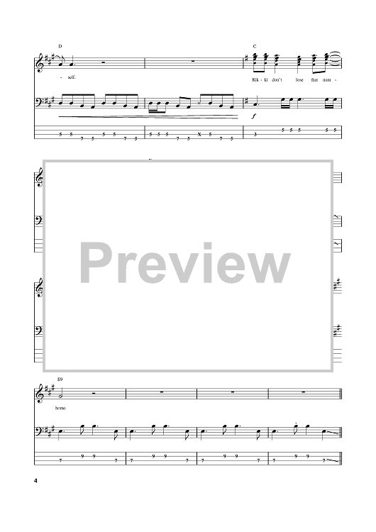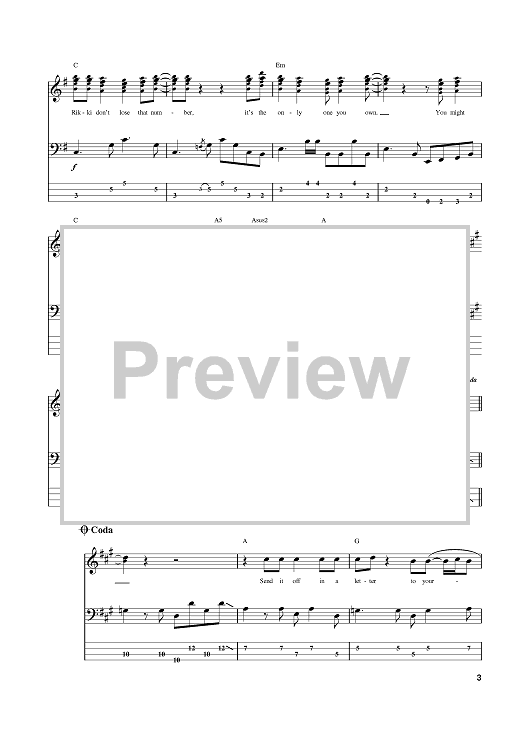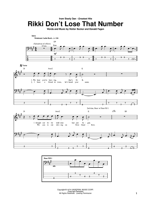 Digital Sheet Music for Rikki Don't Lose That Number by Steely Dan, Donald Fagen, Walter Becker scored for Bass Tab; id:383063