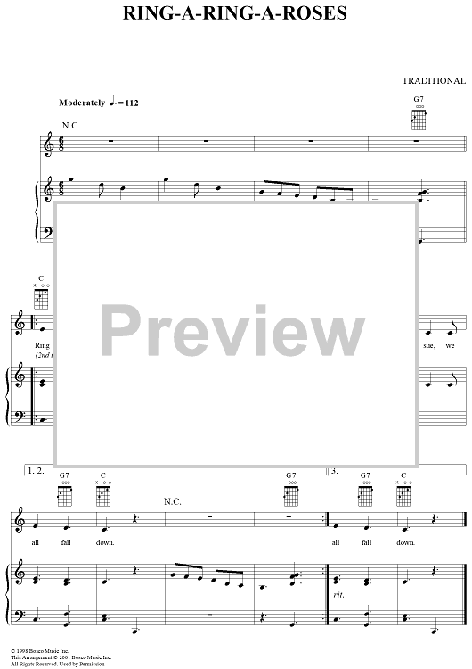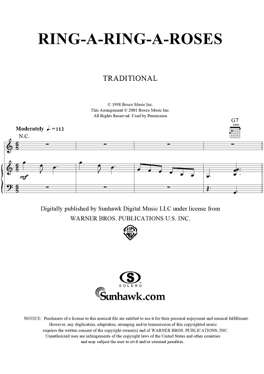 Digital Sheet Music for Ring-A-Ring-A-Roses by Traditional scored for Piano/Vocal/Chords; id:289180