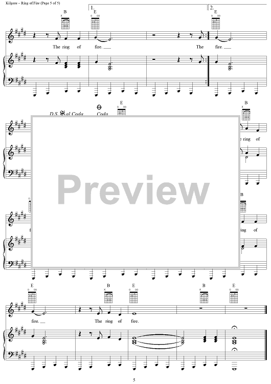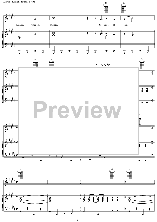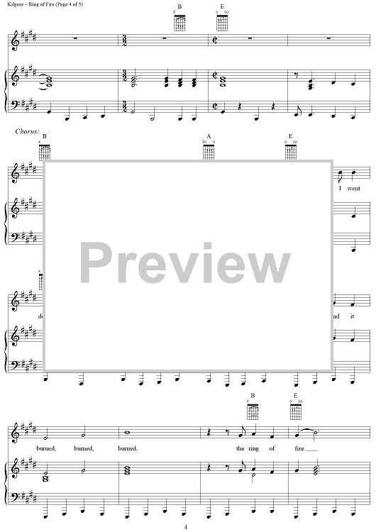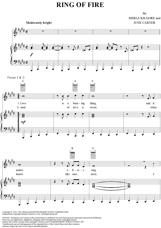 Digital Sheet Music for Ring of Fire by Johnny Cash, June Carter, Merle Kilgore, Dwight Yoakam scored for Piano/Vocal/Chords; id:154649