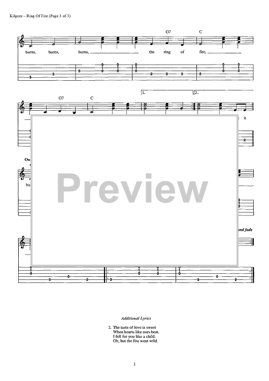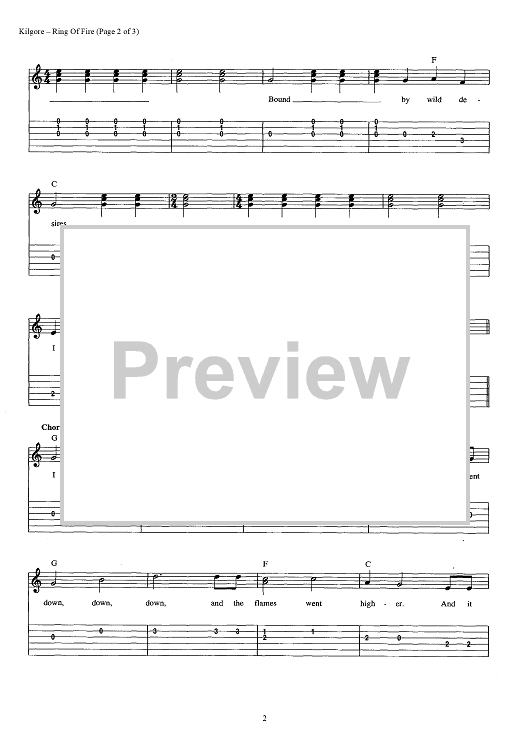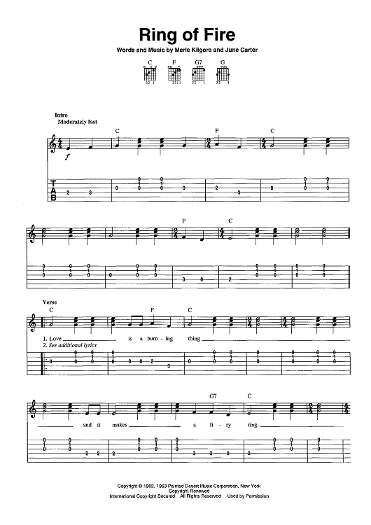 Digital Sheet Music for Ring Of Fire by Johnny Cash, June Carter, Merle Kilgore scored for Easy Guitar Tab/Vocal; id:441764