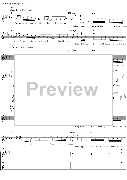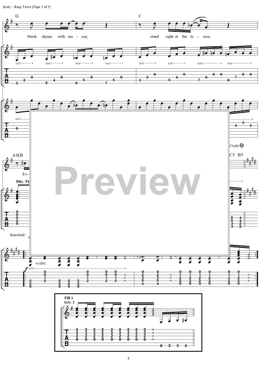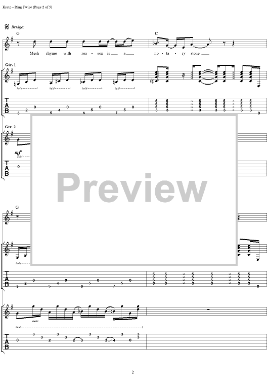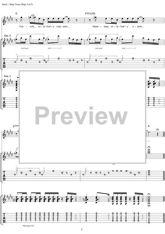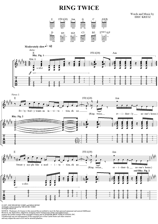Digital Sheet Music for Ring Twice by Eric Kretz, Talk Show scored for Guitar Tab/Vocal; id:120122