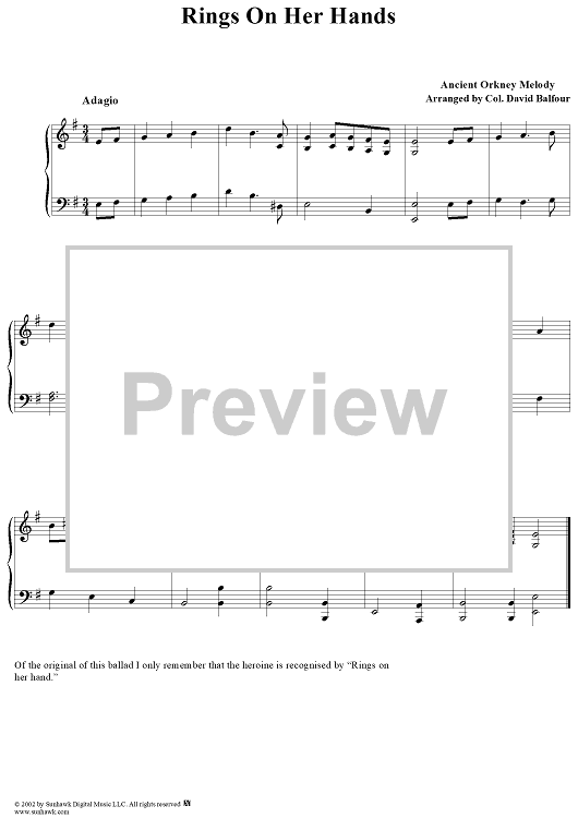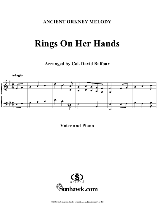 Digital Sheet Music for Rings On Her Hands by Col. David Balfour scored for Voice/Piano; id:277661