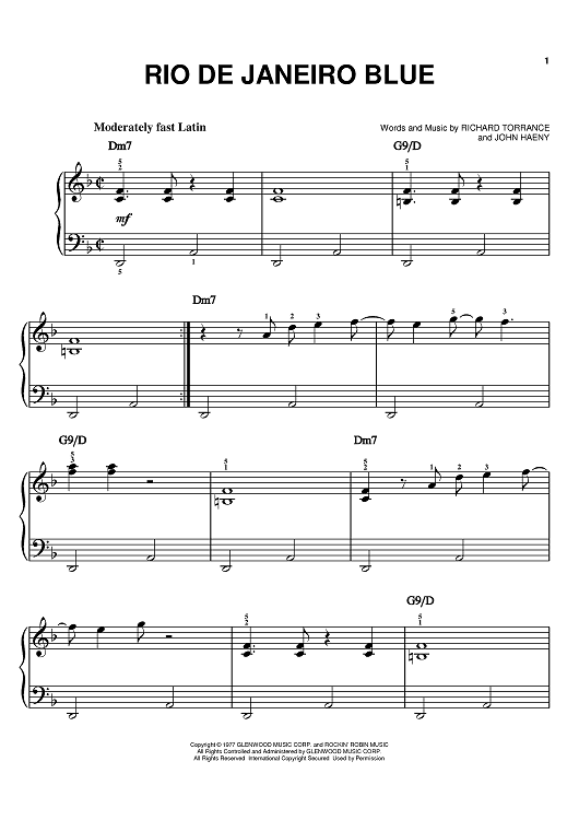 Digital Sheet Music for Rio De Janeiro Blue by Randy Crawford, John Haeny, Richard Torrance scored for Easy Piano; id:371955