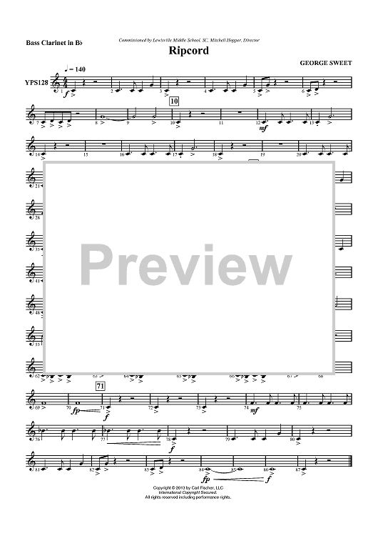 Digital Sheet Music for Ripcord - Bass Clarinet in Bb by George Sweet scored for Concert Band; id:436448