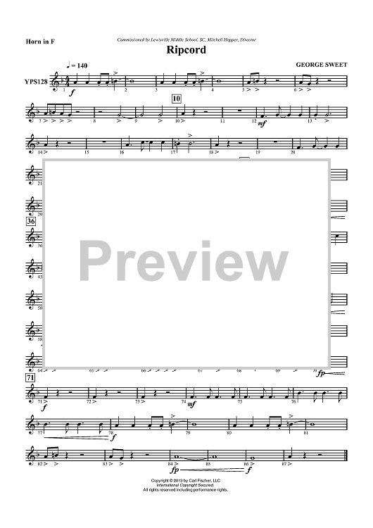 Digital Sheet Music for Ripcord - Horn in F by George Sweet scored for Concert Band; id:436455