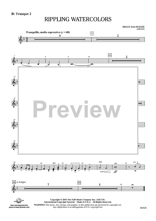 "Rippling Watercolors - Bb Trumpet 2" Sheet Music by Brian Balmages