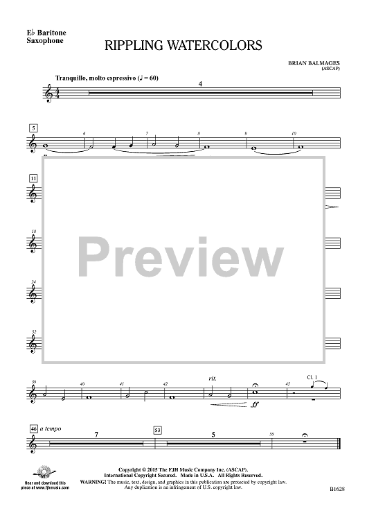 "Rippling Watercolors - Eb Baritone Sax" Sheet Music by Brian Balmages