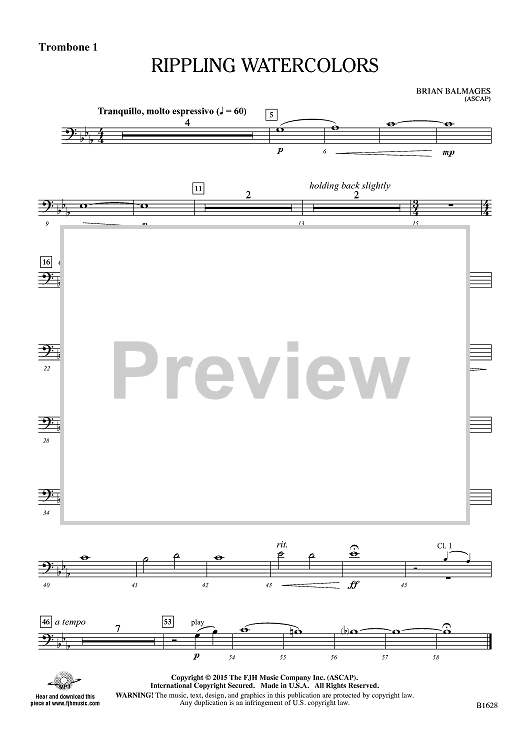 "Rippling Watercolors - Trombone 1" Sheet Music by Brian Balmages