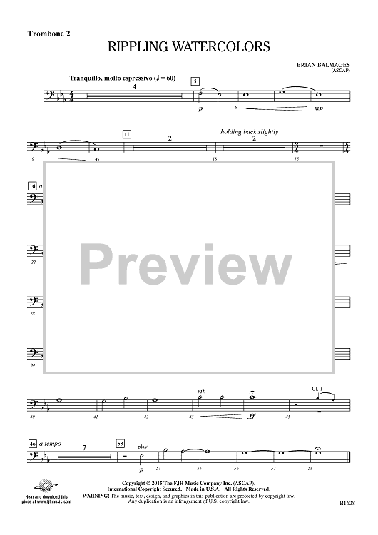 "Rippling Watercolors - Trombone 2" Sheet Music by Brian Balmages