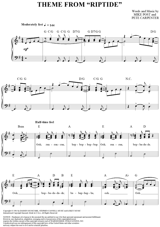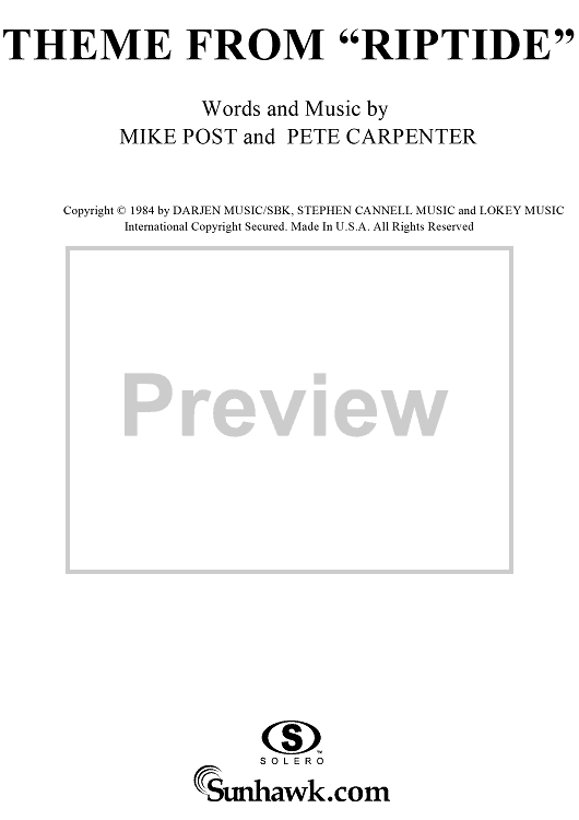 Digital Sheet Music for Riptide (Main Theme) by Mike Post, Pete Carpenter scored for Piano Solo; id:132925