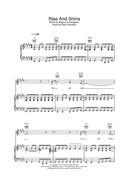 Digital Sheet Music for Rise And Shine by Peter Svensson, The Cardigans, Magnus Sveningsson scored for Piano/Vocal/Chords; id:391032