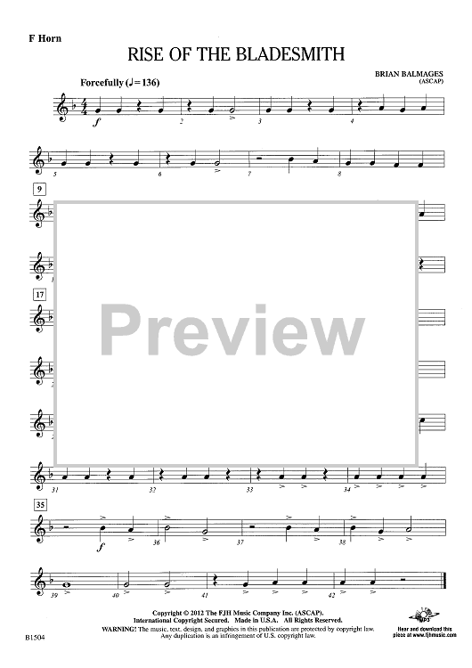 Digital Sheet Music for Rise of the Bladesmith - F Horn by Brian Balmages scored for Concert Band; id:438691