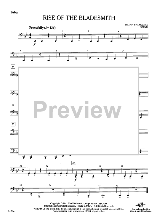 Digital Sheet Music for Rise of the Bladesmith - Tuba by Brian Balmages scored for Concert Band; id:438695