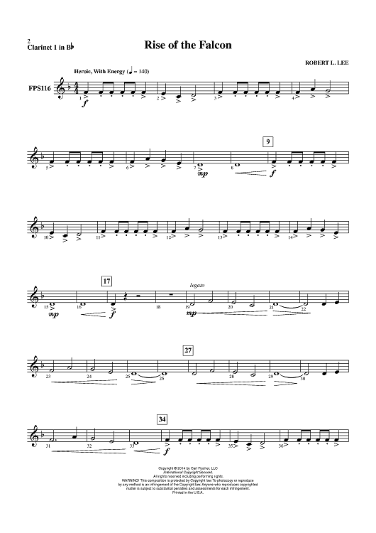 "Rise of the Falcon - Clarinet 1 in Bb" Sheet Music by Robert L. Lee