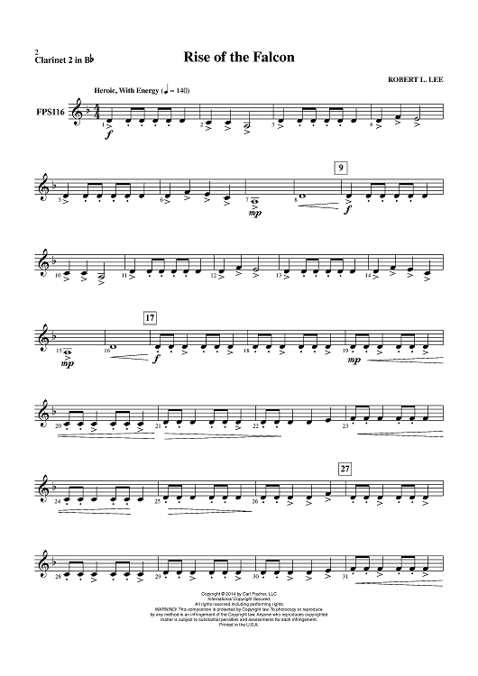 "Rise of the Falcon - Clarinet 2 in Bb" Sheet Music by Robert L. Lee