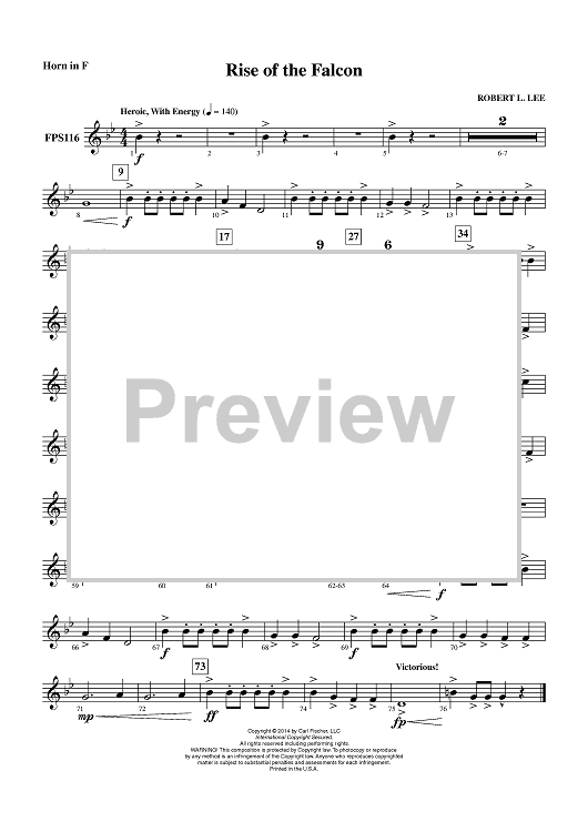 Digital Sheet Music for Rise of the Falcon - Horn in F by , Robert L. Lee scored for Concert Band; id:451330