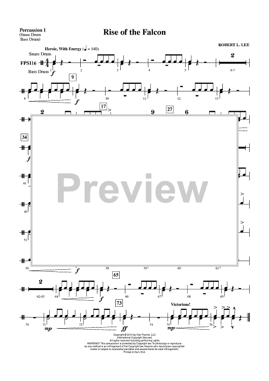 "Rise of the Falcon - Percussion 1" Sheet Music by Robert L. Lee