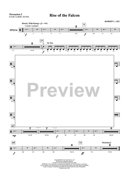 Digital Sheet Music for Rise of the Falcon - Percussion 2 by , Robert L. Lee scored for Concert Band; id:451337
