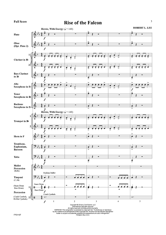 Digital Sheet Music for Rise of the Falcon - Score by , Robert L. Lee scored for Concert Band; id:451319