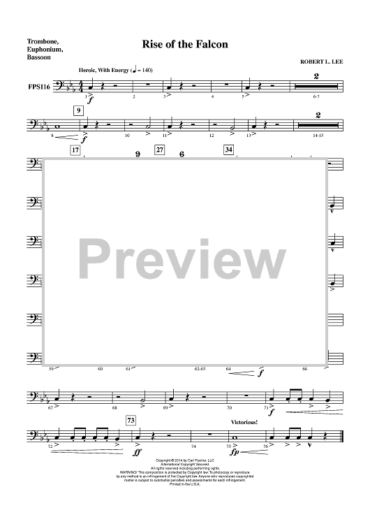 "Rise of the Falcon - Trombone, Euphonium BC, Bassoon" Sheet Music by Robert L. Lee